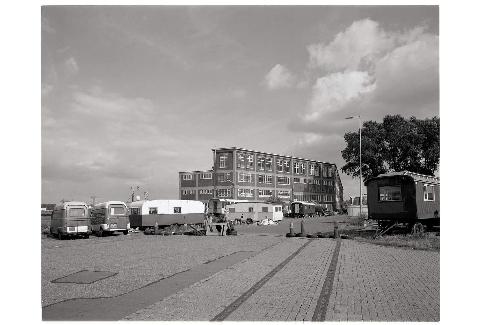 Eén serie van 6 foto's is in zwart - wit, gefotografeerd met een ouderwetse analoge platencamera, en gaat terug in de tijd in het Oostelijk Havengebied in 1989.