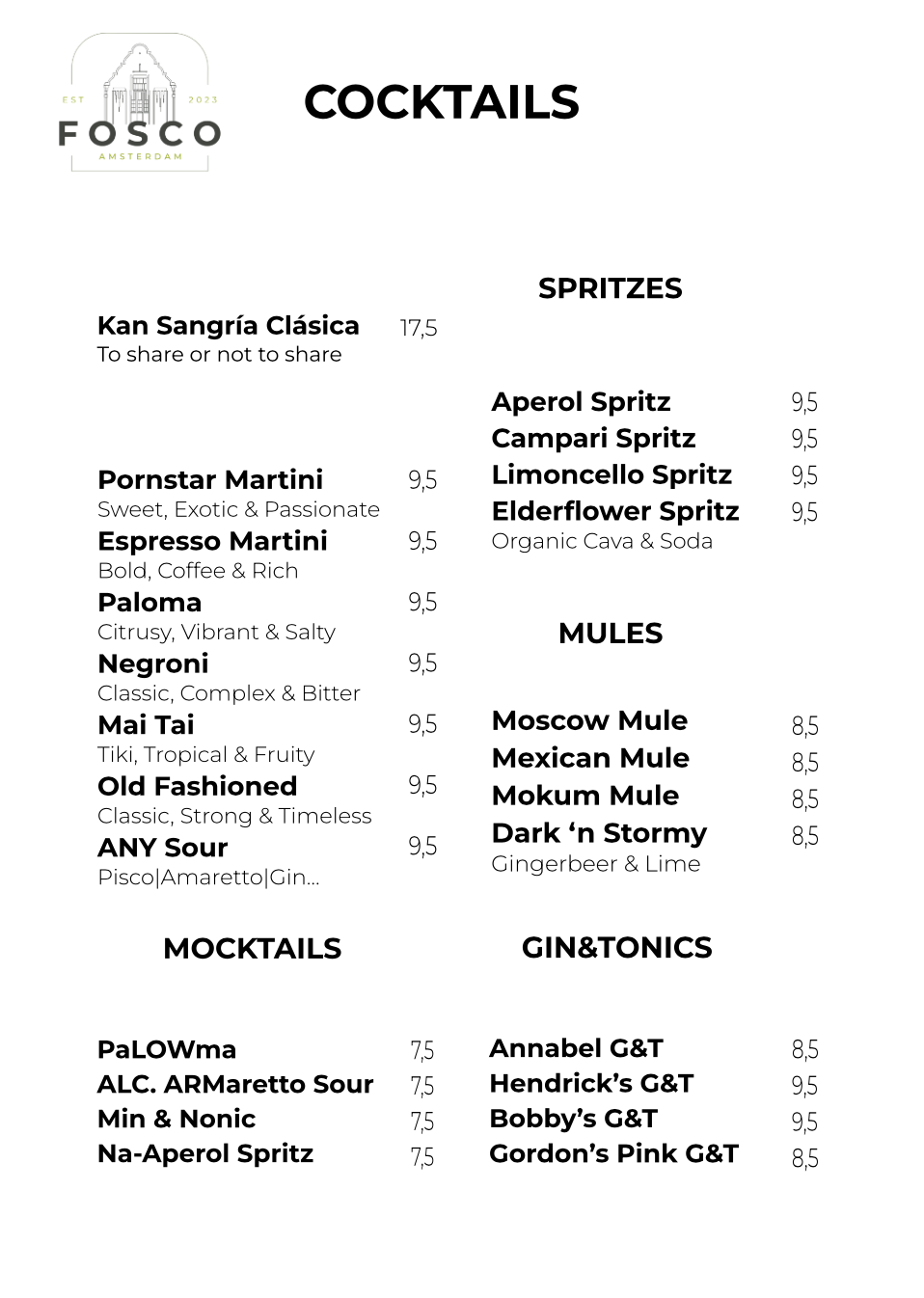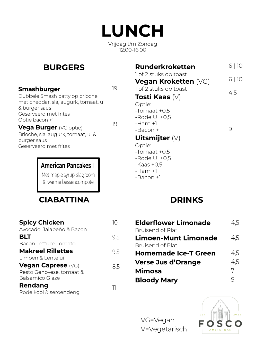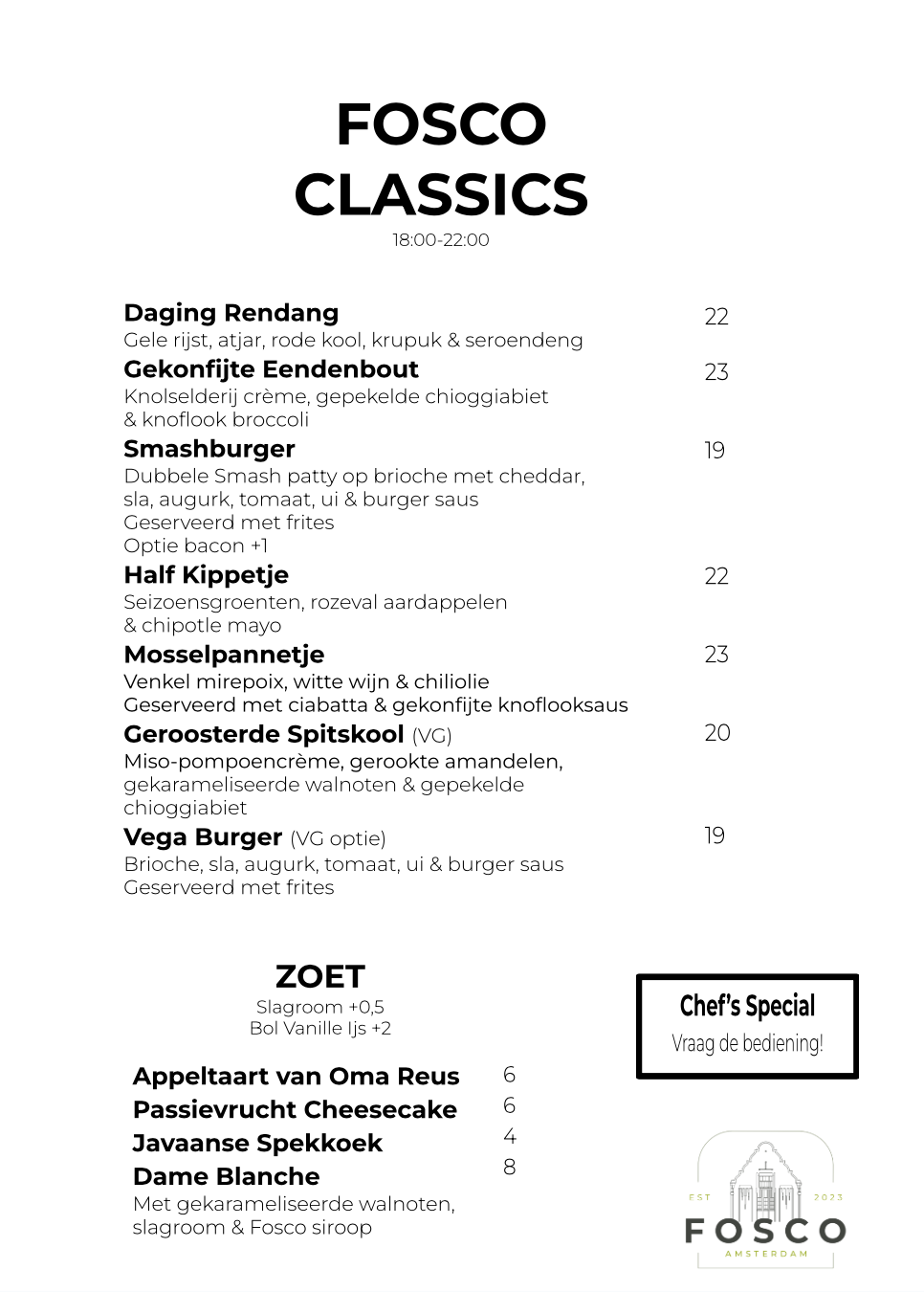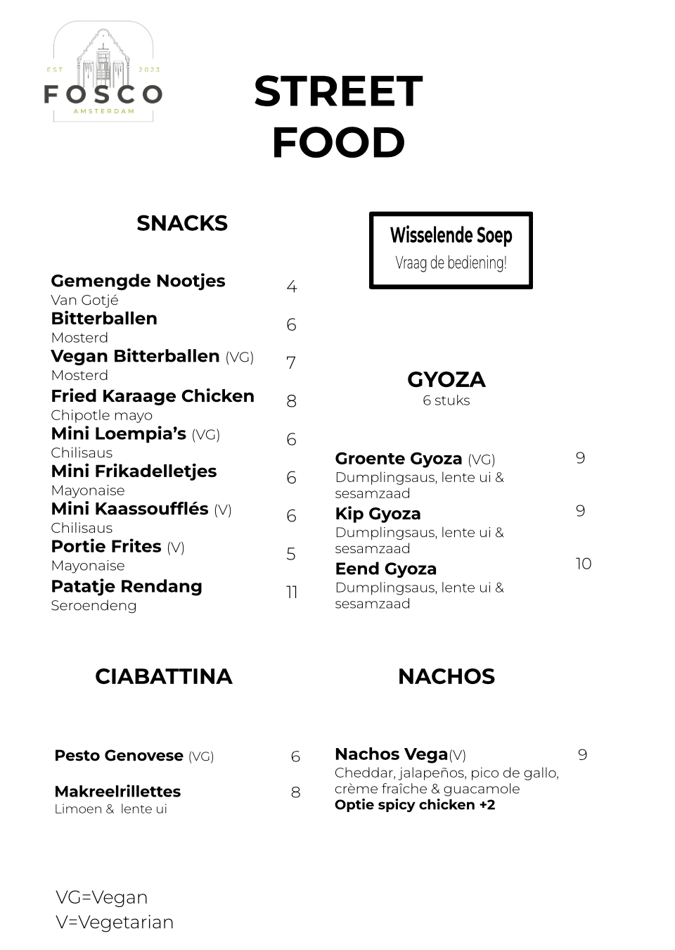Welkom bij Fosco Amsterdam. Iedereen is hier van harte welkom om te genieten van een ongedwongen sfeer, heerlijke koffie, krantje, lunch, borrel/cocktail, bitterbal of diner. Met live muziek, kunst-exposities, bedrijfsborrels, quizzen, een kleurplaat voor de kleintjes en uiteraard belangrijke live uitzendingen via ons grootscherm, wil Fosco weer voor wat reuring zorgen in het Oostelijk Havengebied. Ons hele team heeft er heel veel zin in, tot snel!